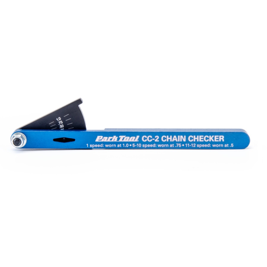 Una cadena de bicicleta desgastada puede provocar cambios deficientes y, con el tiempo, incluso puede provocar un desgaste excesivo del desviador y los piñones traseros, provocando un problema mucho más costoso. Por eso los fabricantes de componentes para bicicletas recomiendan cambiar la cadena a intervalos regulares de desgaste. Ahora puedes determinar de forma rápida y precisa el desgaste (o “estiramiento”) de casi cualquier cadena de bicicleta con el comprobador de cadena CC-2.