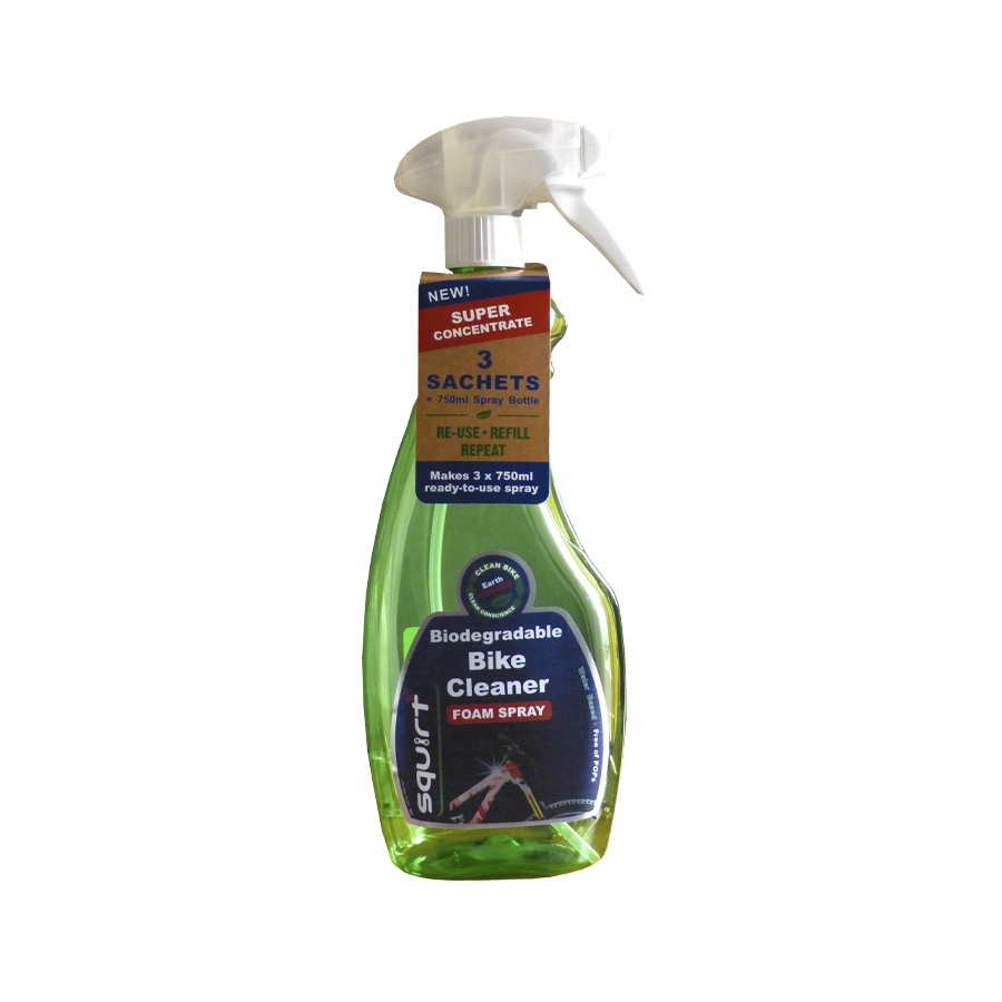 Squirt Bike Cleaner limpiador de bicicletas biodegradable en presentacion de spray 750 ml en espuma.